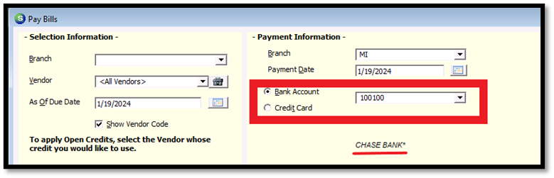 - Open Pay Bills from the tree to verify that you see the new bank.